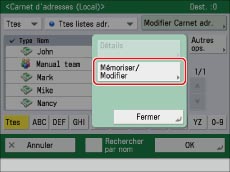 Sélectionner le destinataire à modifier → appuyer sur [Détails/Modif.].