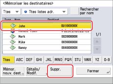 Sélectionner le destinataire à supprimer → appuyer sur [Suppr.].