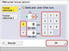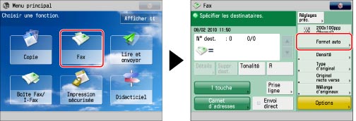 En cas d'envoi d'une télécopie en mode Envoi direct ou Envoi manuel et si l'original est placé dans le chargeur, le réglage Format de lecture spécifié n'est pas utilisé.