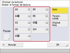 L'option [Auto] ne peut être sélectionnée pour la lecture des types d'originaux suivants. Sélectionner le format de lecture souhaité.