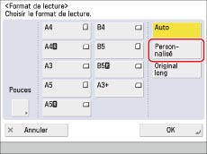 Noter les points suivants si le format de lecture est réglé sur [Personnalisé] :