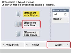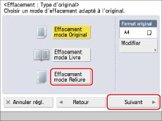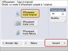 Appuyer sur [Effacement mode Original] → [Suivant].