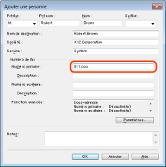 Il est possible d'enregistrer deux numéros de télécopie : un numéro principal et un numéro secondaire.