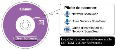 Comme le pilote d'imprimante, le pilote du scanner s'installe à partir du User Software CD-ROM.