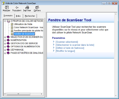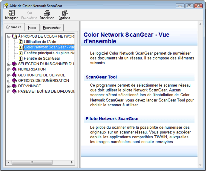 Accès à l'aide en ligne de Color Network ScanGear/Network ScanGear