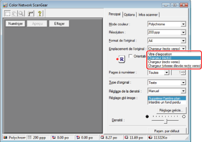 Dans la feuille [Principal], définir les paramètres de numérisation en fonction des besoins.