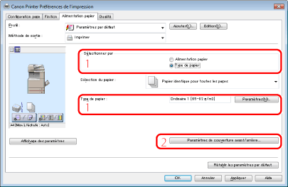 Permet d'utiliser du papier d'un type différent de celui utilisé pour les pages principales, en vue de créer des couvertures de dessus/dessous.
