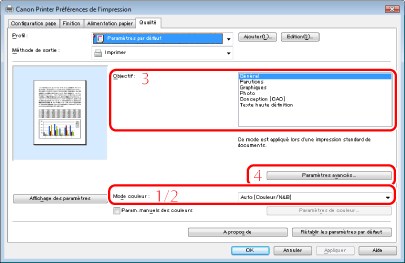 Pour plus d'informations sur l'accès à l'écran du pilote d'imprimante, voir "Impression" ou "Configuration des paramètres d'impression par défaut".