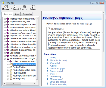 Cliquer sur [Sommaire]/[Index]/[Rechercher] pour rechercher des informations.