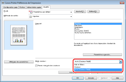 Il est possible d'imprimer en couleur ou en niveaux de gris.