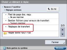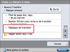 Appuyer sur [Réglages de transfert].