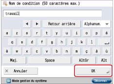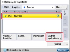 Sélectionner la condition de transfert mémorisée → appuyer sur [Valider/Invalider].