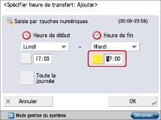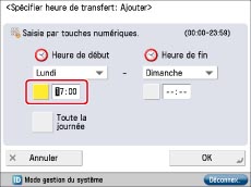 Appuyer sur [Spécifier H.transfert] → [Spécifier la période] → [Ajouter].