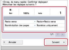 Vérifier les réglages → appuyer sur [Suivant].