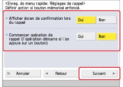 Sélectionner les réglages de rappel → appuyer sur [Suivant].