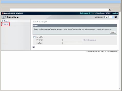 En cas de mémorisation des réglages des fonctions fréquemment utilisées telles que Copie, Lire et envoyer et Lire et mémoriser dans le Menu rapide, il est possible d'utiliser ces réglages sur une autre machine.