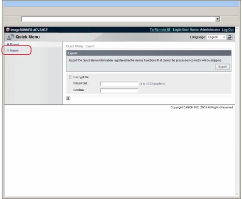 Seul un administrateur peut exporter/importer le menu rapide à partir d'un ordinateur.