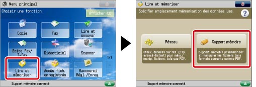 Appuyer sur [Lire et mémoriser] → [Support mémoire].