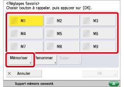 Sélectionner un bouton pour mémoriser les réglages → appuyer sur [Mémoriser].