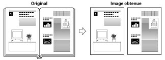 Ce mode permet de lire des pages en vis-à-vis d'un livre ou d'un original relié et de les enregistrer comme deux pages distinctes.