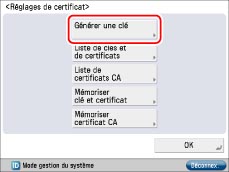 Après avoir appuyé sur [Générer une clé], il est impossible d'utiliser les clés tant qu'aucune biclé n'a été générée et enregistrée.