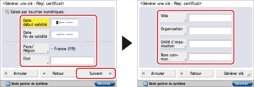 Un serveur DNS est nécessaire pour utiliser le nom de domaine complètement qualifié de la machine dans [Nom commun]. Utiliser l'adresse IP de la machine en cas d'absence de serveur DNS.