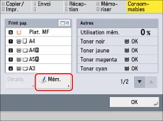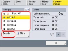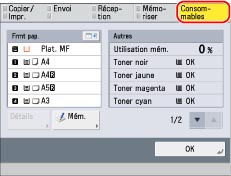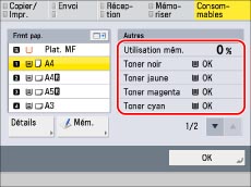 Le tableau ci-dessous indique les quantités de consommables restantes.