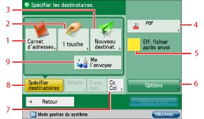 Pour accéder à des fonctions d'envoi utiles, telles que l'envoi simultané d'originaux de formats différents ou l'envoi d'originaux recto verso.