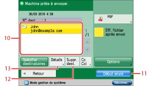 Pour vérifier ou modifier les informations sur le destinataire sélectionné dans la liste des destinataires.