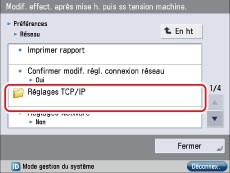 Appuyer sur [Préférences] → [Réseau] → [Réglages TCP/IP].