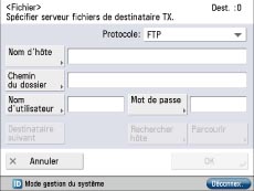 Dans certains environnements, des réglages détaillés peuvent être nécessaires pour pouvoir utiliser FTP. Pour plus d'informations, consulter l'administrateur réseau.