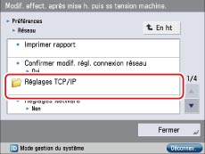 Appuyer sur [Préférences] → [Réseau] → [Réglages TCP/IP].