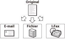 La fonction Envoi permet d'envoyer des données de documents ou d'images lues vers des serveurs de fichiers, ou de les envoyer sous forme d'e-mail ou d'I-Fax. Plusieurs formats de fichiers sont pris en charge (PDF, JPEG, TIFF et XPS), ce qui permet d'accroître la flexibilité d'intégration des environnements numériques professionnels.
