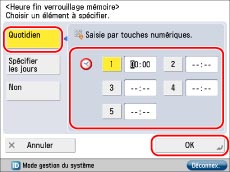 Il est possible de choisir [Quotidien] pour Heure début verrouillage mémoire et [Spécifier les jours] pour Heure fin verrouillage mémoire, et vice versa.