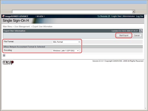 Exporter les données utilisateur créées dans le format de fichier utilisé pour SDL et le système Local Device Authentication de SSO-H (extension de fichier : "ldif").