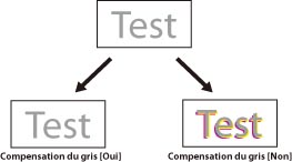 Les données de noir et de gris sont imprimées en quadrichromie (CMJN). Le niveau de reproduction du dégradé des zones sombres est amélioré par rapport à l'utilisation de l'option [Oui].