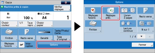 Il est possible de modifier les réglages rappelés avant de lancer le tirage.
