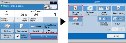 Il est possible de modifier les réglages rappelés avant de lancer le tirage.