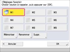 Les noms de bouton sont conservés. Appuyer sur [Renommer] pour renommer un bouton.