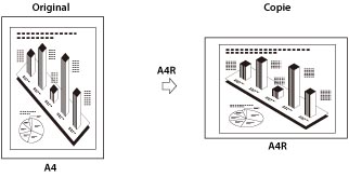 Il est possible d'agrandir ou de réduire automatiquement un original vers un format papier spécifié. Le même taux de reproduction est utilisé pour l'axe horizontal et l'axe vertical.