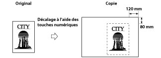 Il est possible de spécifier la position d'impression lors de la copie d'un original. On peut affiner le réglage de cette position en saisissant les chiffres en millimètres.