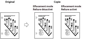 Ce mode permet d'effacer les marques qui peuvent apparaître sur les copies aux emplacements correspondant aux perforations des originaux.