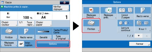 Le mode Agrafage n'est disponible que si un module de finition est installé.