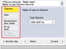 Appuyer sur [Options] → [Filigrane sécurisé].