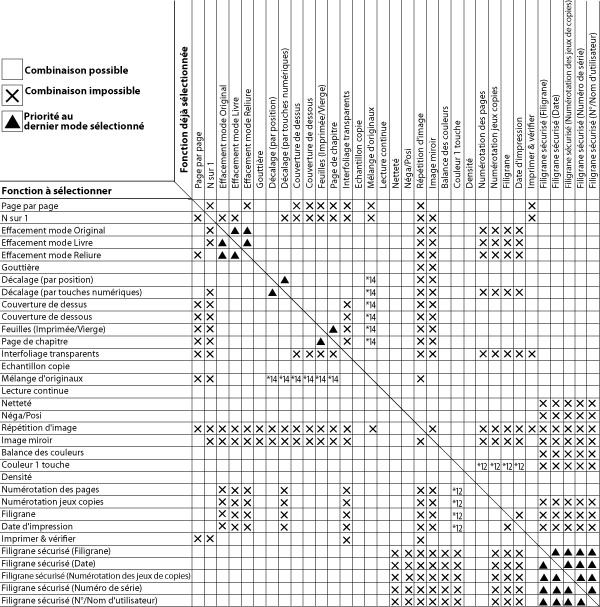 *14: Il est impossible de combiner ces modes lorsque le mode de sélection automatique du format papier est activé.