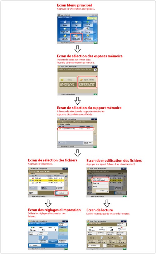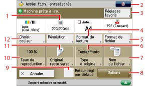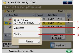 Pour savoir comment ajouter un fichier (Lire et mémoriser) et obtenir des informations détaillées sur l'écran de lecture, voir "Ajout de fichiers (Lire et mémoriser)" et "Flux des opérations de lecture et de mémorisation".