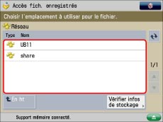 Pour utiliser l'espace de stockage réseau, il est nécessaire d'effectuer des réglages préalables en fonction des besoins. Pour plus d'informations, voir "Réglages réseau".