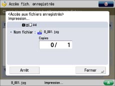 Si plusieurs fichiers sont sélectionnés, il est possible de modifier le nombre d'impressions en appuyant sur [Modifier nbre copies].