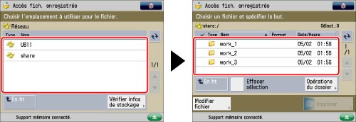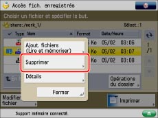Il est possible de vérifier les informations détaillées des fichiers (nom de dossier, emplacement, date de modification, etc.), et d'ajouter ou de supprimer des fichiers enregistrés sur le réseau.
