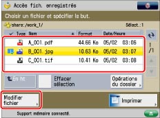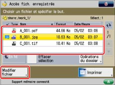 Sélectionner le fichier souhaité → appuyer sur [Modifier fichier].